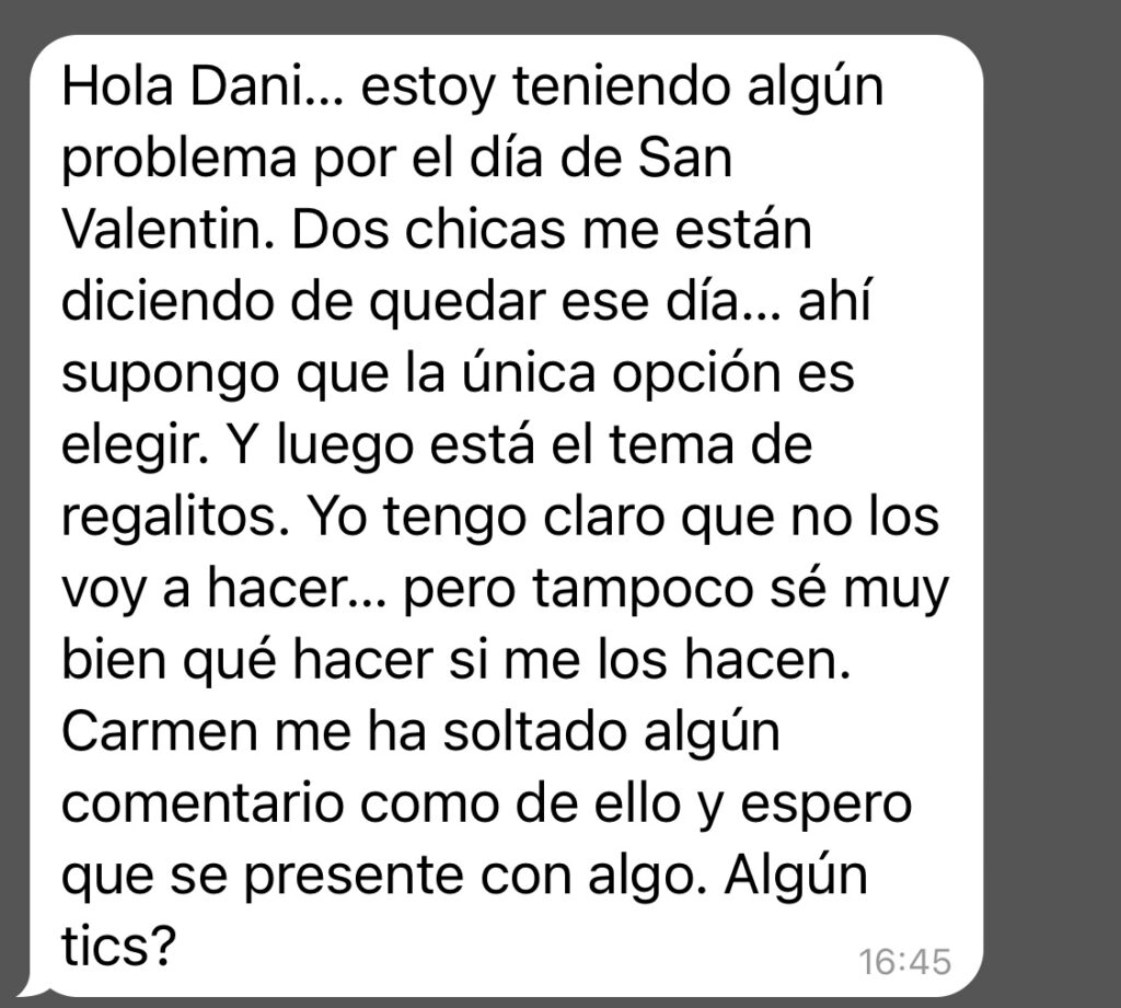 Aquí puedes ver uno de los «problemas» que tuvo el día de San Valentín cuando estaba en la mentoría: