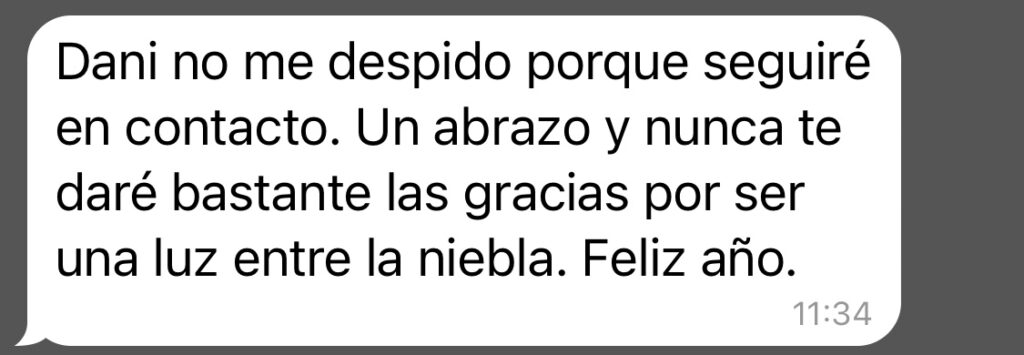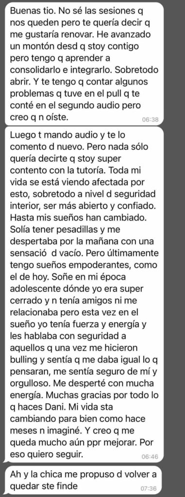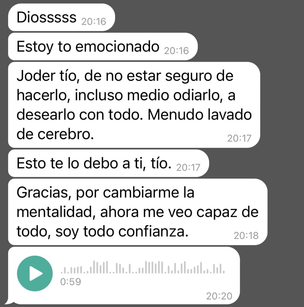Aquí puedes ver lo que me dijo cuando terminó la mentoría: