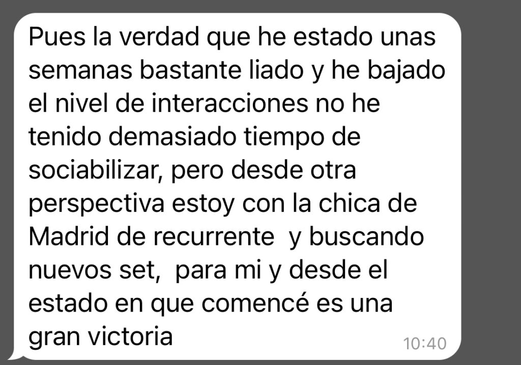 Consiguió recuperar esa «vidilla» sentimental, sentirse atractiva de nuevo, algún pull y una chica recurrente, como cuenta aquí: