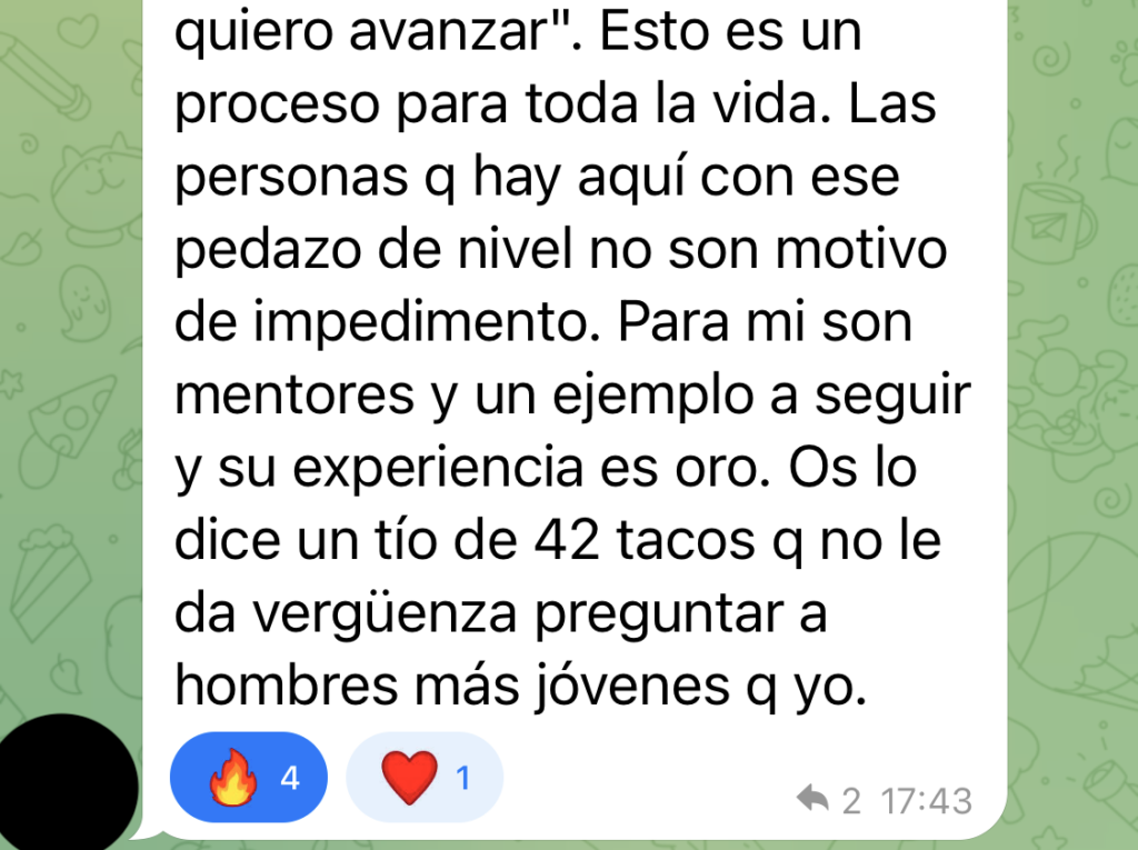 Si quisiese convencerte de ello te diría que la media de edad de los alumnos del programa es de 38 años o que en la última edición se apuntó un alumno de 61, pero como prefiero que te convenzas por ti mismo, te dejo capturas de alumnos donde te lo cuentan ellos: