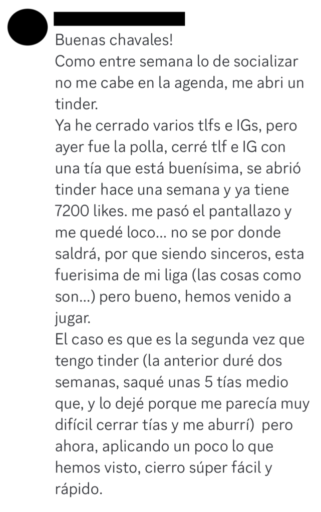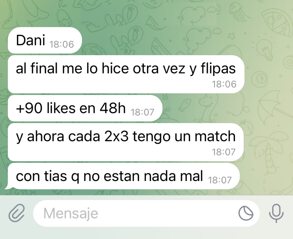 «Antes de hacer el curso sentía que no tenía una estrategia, daba likes sin sentido a mujeres sin tener en cuenta que ellas reciben millones al día y me daban likes chicas que no eran atractivas.